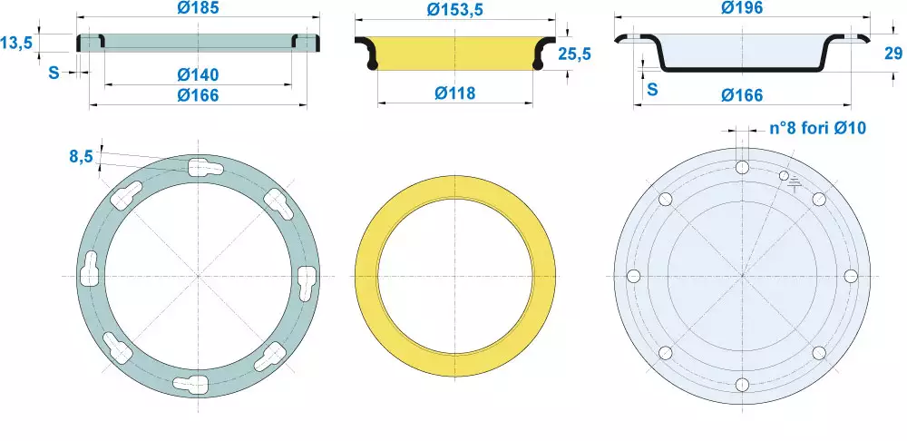 L’aggraffatura delle flange può essere eseguita su vari tipi e diametri di fondi di nostra produzione. Sono disponibili anche in acciaio al carbonio che inox (AISI 304 e 316L).